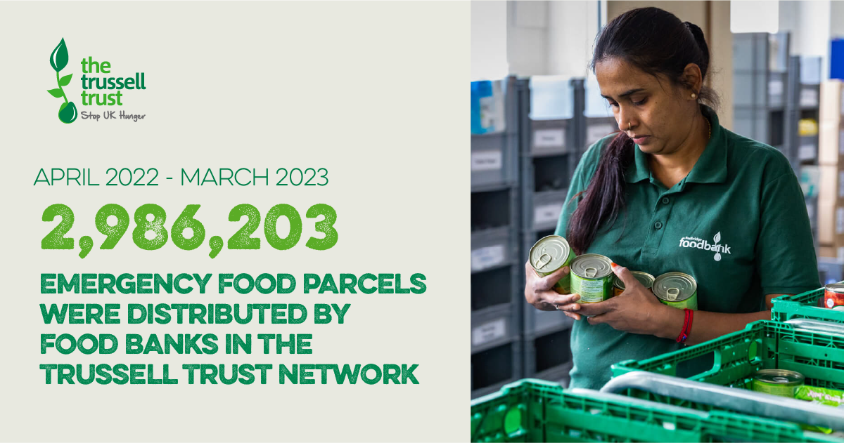 Record number of emergency food parcels provided to people facing hardship by Trussell Trust food banks in past 12 months