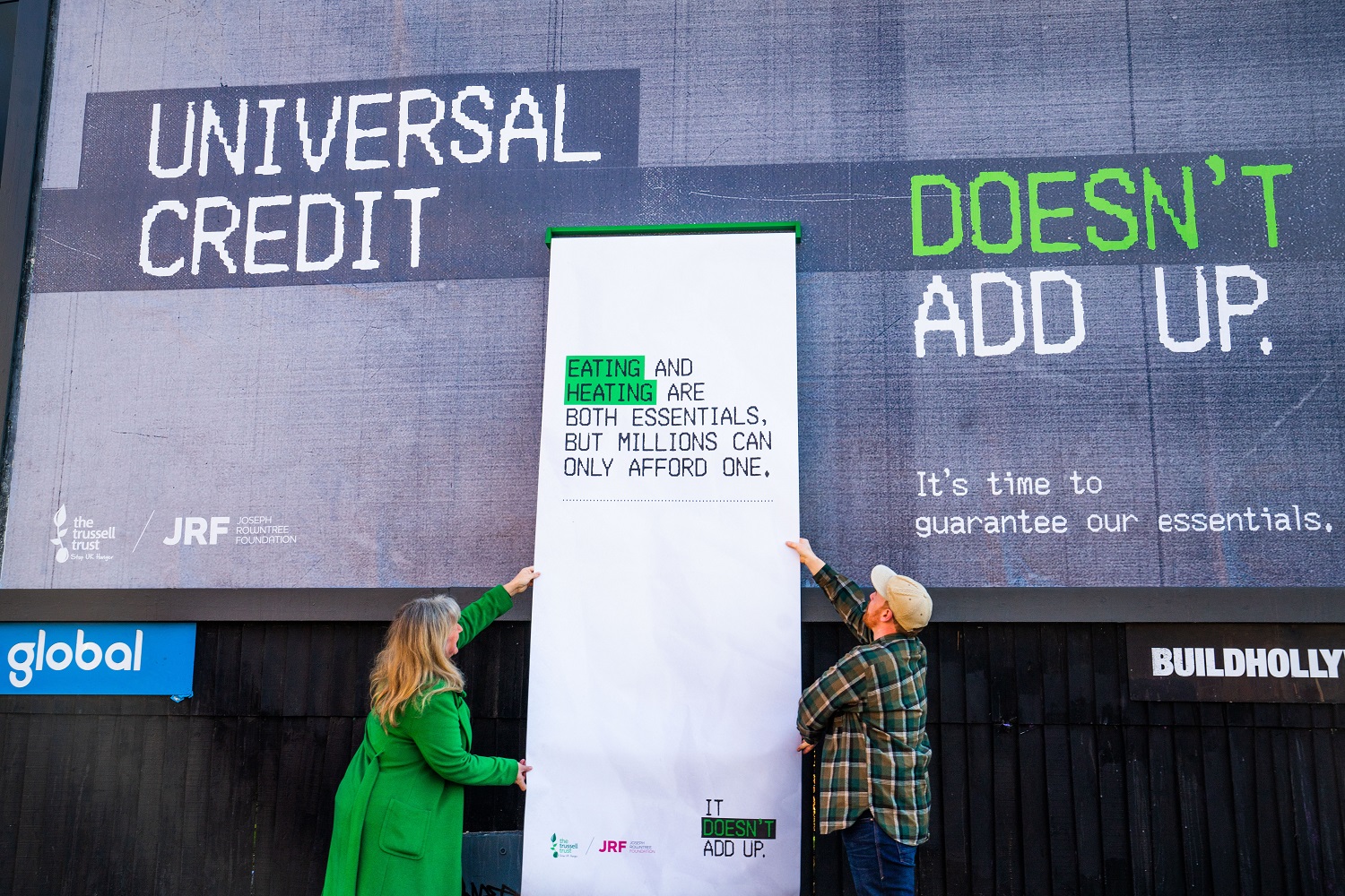 Giant interactive till roll highlights imbalance between essential living costs and Universal Credit
